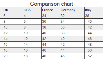 Weitere Größenschlüssel und Formulare von Fremdfirmen: