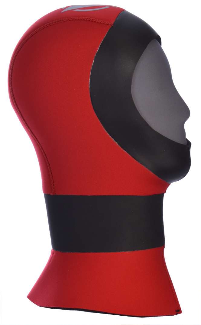 Die Kopfhaube besitzt einen s.g. Krempelkragen, über den der Tauchanzug gezogen wird. Dadurch wird ein Herausrutschen, auch durch starke Kopfbewegungen, verhindert und somit eine ungestört optimale Abdichtung durch die aufeinanderliegenden Glatthautteile von Overall und Kopfhaube gewährleistet.