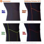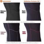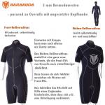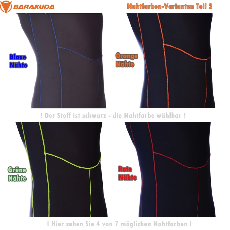 Der Overall ist mit schwarzem Highstretch-Stoff kaschiert. Die Nahtfarbe ist frei wählbar. Die zur Verfügung stehenden Nahtfarben können oben rechts in der Auswahlbox eingesehen und bestellt werden. Ebenfalls konfigurierbar sind die Manschetten bzw. die Reißverschlussausstattungen.